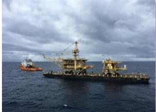 COOEC’s first international offshore decommissioning project, 4 topsides were decommissioned in only 12 days at Gulf of Thailand, in water depth of 70 meters.