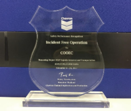 ? ? ???Won the highest Safety Performance Award of Chevron for Incident Free Operation
